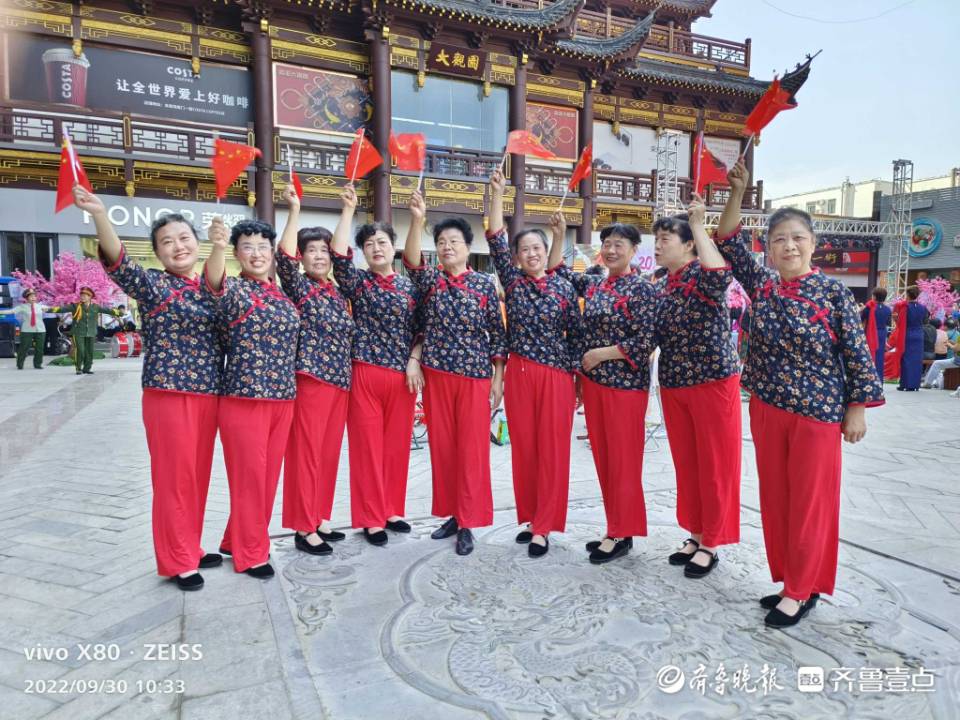 情报员“袁佩颖279635”:今天我们长北吕剧艺术团的姐妹们手持国旗,在大观园的舞台上献上一曲吕剧,受到观众朋友的好评,掌声不断。