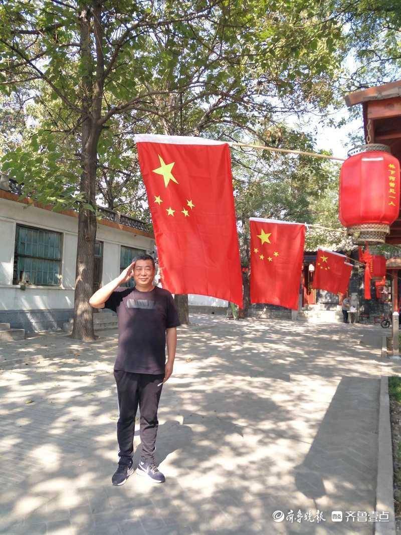济南情报员“壹粉漫步”:我是退伍老兵,我和国旗合个影,我给国旗敬个礼,祝福伟大的祖国生日快乐!