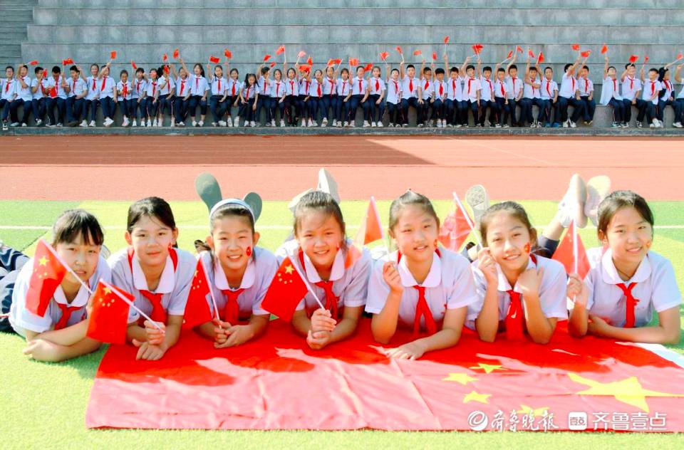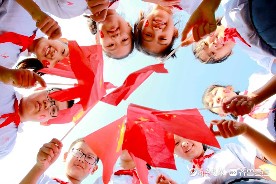 情报员“你瞅啥?”:山东师范大学天衢新区杨庄实验小学,学生和国旗合影。