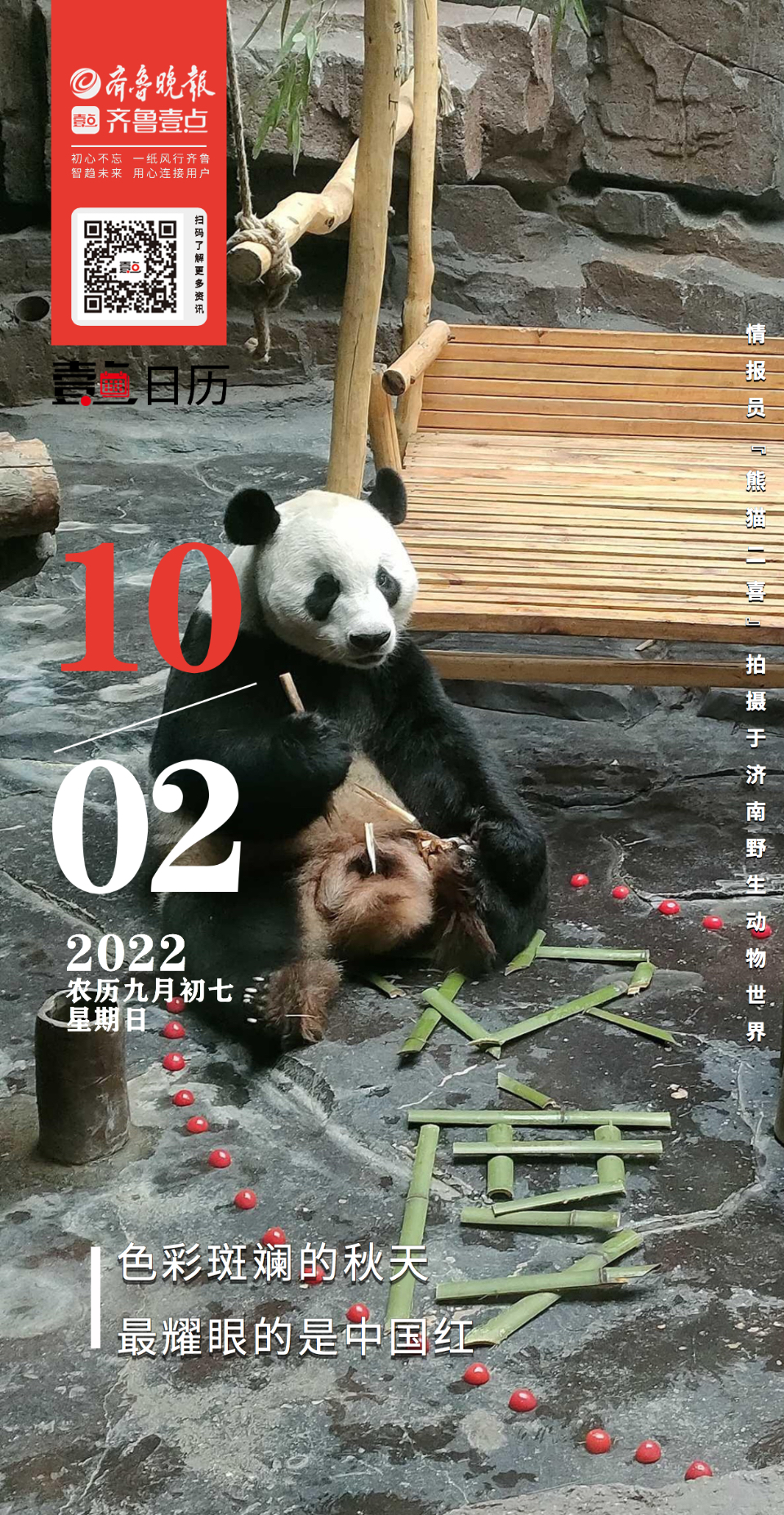 济南野生动物世界的熊猫“二喜”,作为全球首位动物情报员,国庆节也来送祝福喽,祝福祖国更加繁荣昌盛。