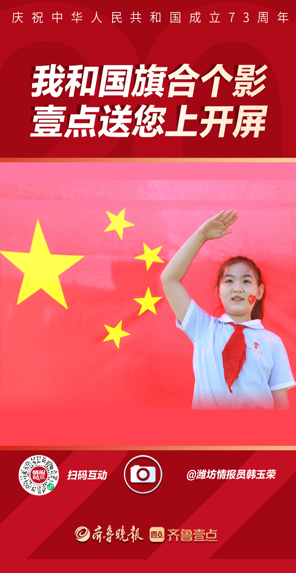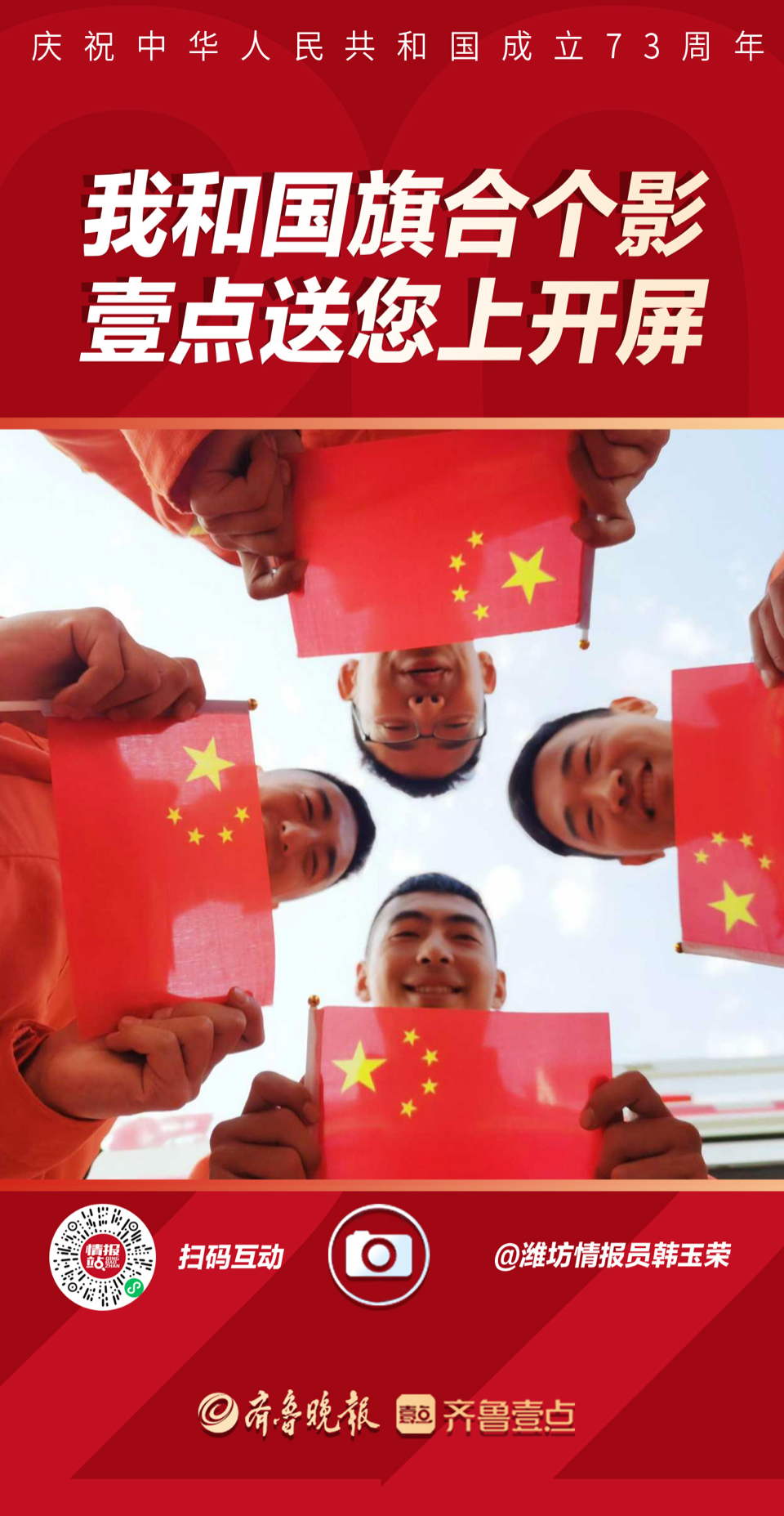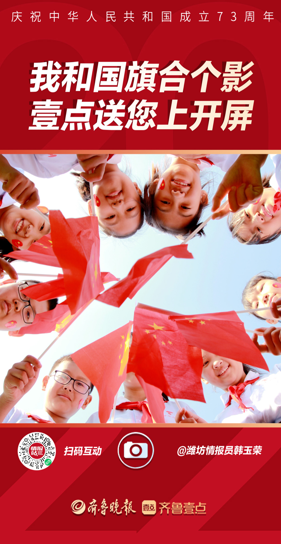 【参与方式】:下载齐鲁晚报官方客户端齐鲁壹点,点击进入情报站,参与互动话题#我和国旗合个影,壹点送你上开屏#+为祖国母亲送上最美好的祝福,注明合影坐标和合影背后的国庆感受和记忆,添加图片上传即可。
