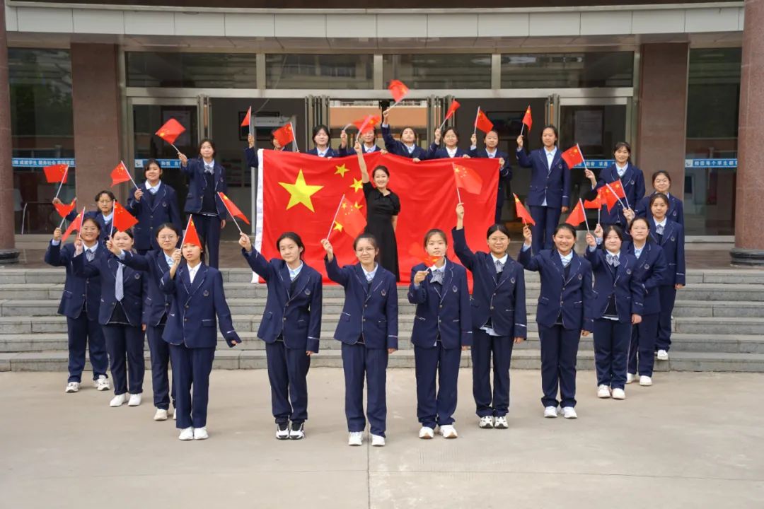 在临沂第九中学全体师生们向国旗敬礼,和祖国同追梦!