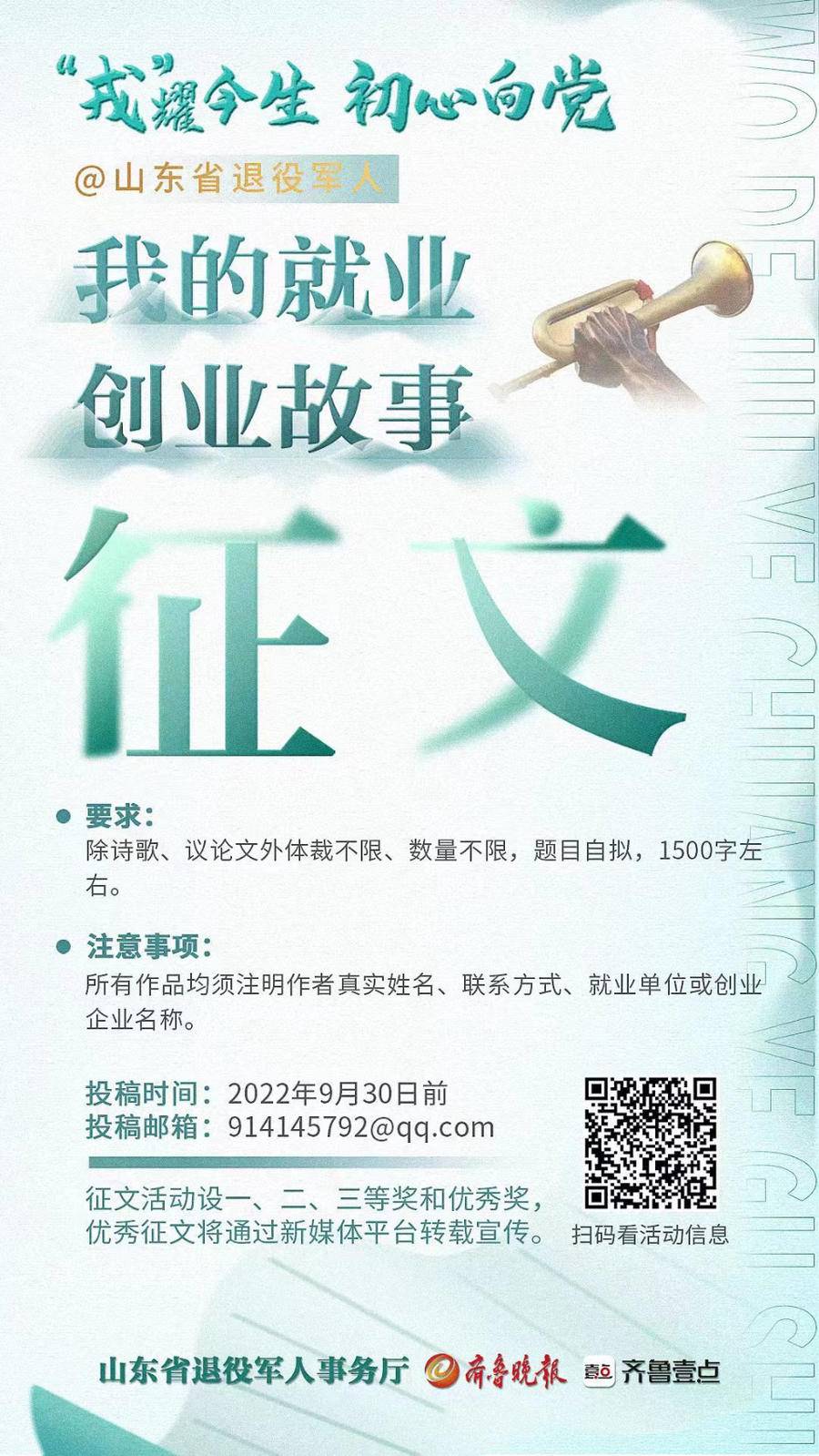 编者按:为指导帮助更多退役军人成功走上职业发展之路,山东省退役军人事务厅面向全省退役军人开展“我的就业创业故事”主题征文活动。征文活动设一、二、三等奖和优秀奖,优秀征文将在省退役军人厅微信公众号、齐鲁晚报·齐鲁壹点等新媒体平台转载宣传。