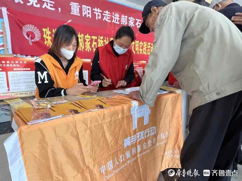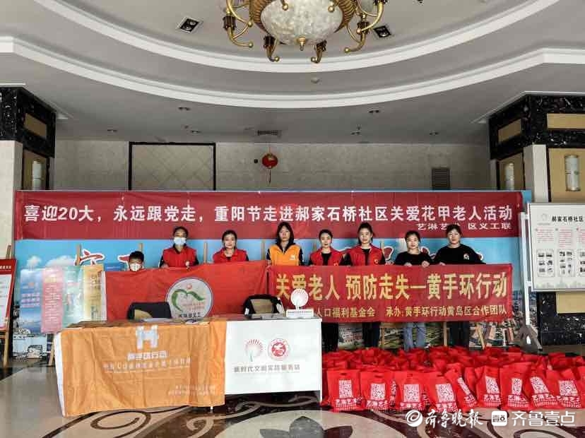 "岁岁重阳,今又重阳,彩云追月,桂花飘香,秋高气爽胜春光。"中华民族一年一度的传统节日ーー重阳节期间,黄手环行动黄岛区合作团队的志愿者们来到郝家石桥社区,为社区老人免费宣传预防阿尔茨海默病的相关知识并且为有需要的家庭免费发放防走失定位贴。