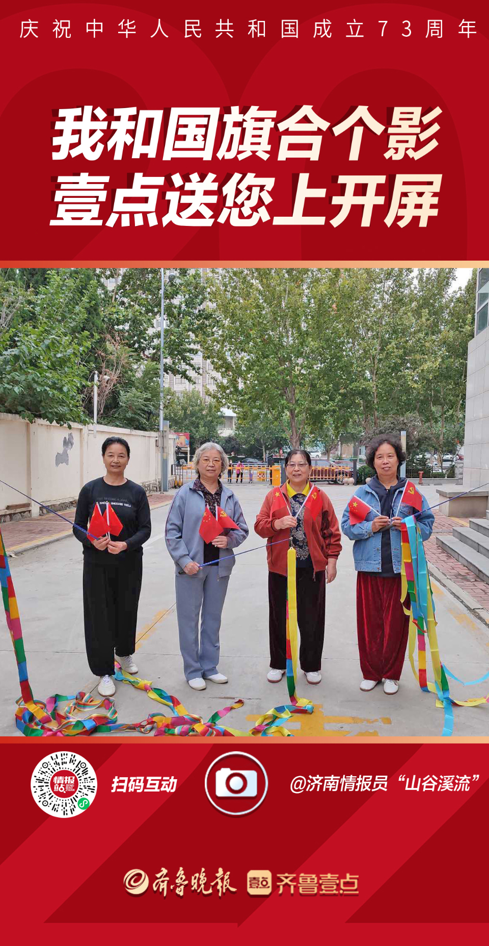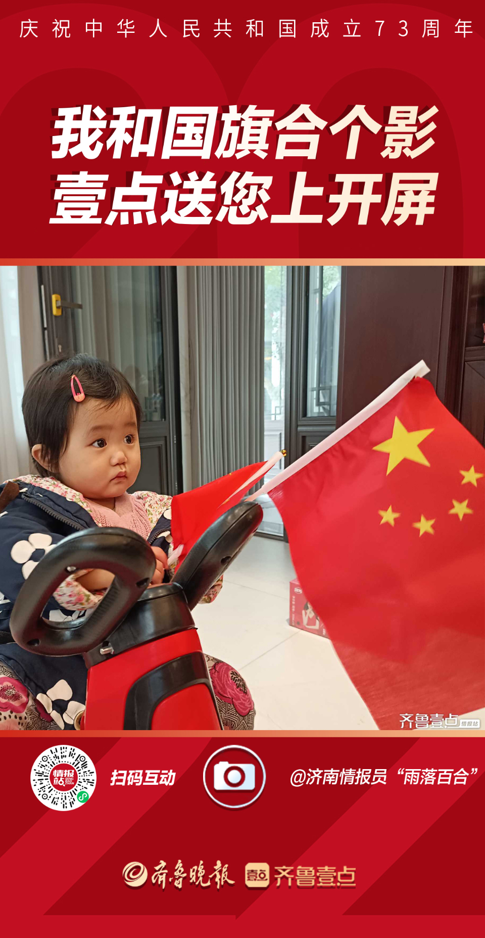 【参与方式】:下载齐鲁晚报官方客户端齐鲁壹点,点击进入情报站,参与互动话题#我和国旗合个影,壹点送你上开屏#+为祖国母亲送上最美好的祝福,注明合影坐标和合影背后的国庆感受和记忆,添加图片上传即可。