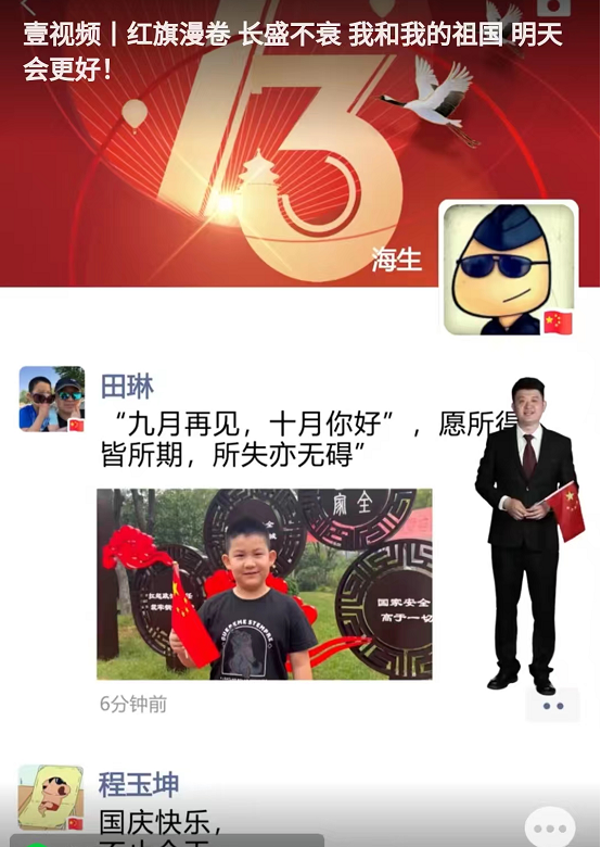 国庆期间,齐鲁晚报·齐鲁壹点还策划制作了《壹视频|红旗漫卷 长盛不衰 我和我的祖国 明天会更好》融媒产品,产品形式新颖,以主播站在微信里现场刷朋友圈的形式传递用户对祖国的美好祝愿,句句肺腑之言、句句真情流露。朋友圈里每一个人都以祖国为骄傲,希望祖国明天会更好。