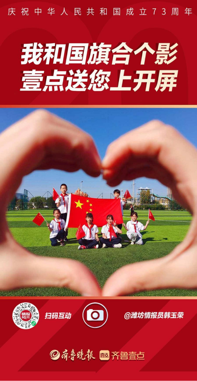 在潍坊西关小学,“我和国旗合个影”成为了校园最美的风景,学生花式表白祖国,“比心”五星红旗,表达了学生们对祖国的诚挚热爱。