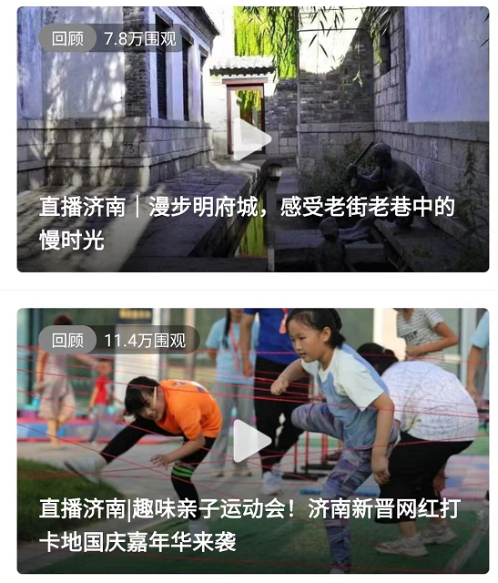 其中,直播济南从景点、网红活动到美食打卡地全方位推介济南。直播济南通过现场直播带领用户关注济南周边游、夜经济和发展成就。在南部山区感受悠然惬意,畅享青山绿水的舒适快乐;在环联夜市,感受人间烟火,推介在济南过夜的新鲜“打开方式”,据悉,此次国庆期间直播济南共发布十余场直播,围观量高达133万,同时还开设专题《畅游济南,乐享国庆!一起走进家门口的诗与远方》,专题点击量达374.1万。