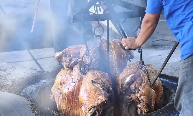 整猪烤制,外焦里嫩,再搭配上独家配料,一走进伍忠号黄家烤肉,独特的烤肉香味便直钻鼻腔,令人垂涎欲滴。迄今已有400多年历史的黄家烤肉,如今已经传到了第22代传承人黄宽的手上。