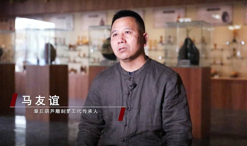 章丘文祖街道藏着一个“葫芦世界”,展柜和博古架上摆满了各式各样的葫芦雕刻艺术品,这些作品大都出自章丘葫芦雕刻第五代非遗传承人马友谊之手。葫芦已经完全融入了他的生活,而他也在葫芦上雕刻出了美好生活。