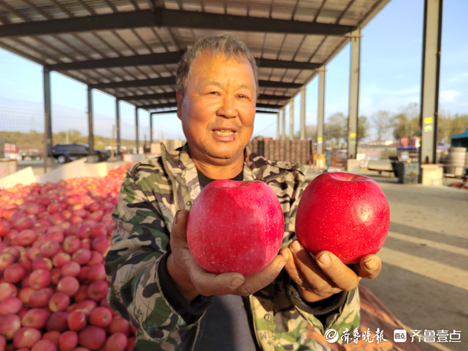63岁的果农柳尧虎种出的苹果果型好、表光好,卖出了好价钱。齐鲁晚报·齐鲁壹点记者 钟建军 摄