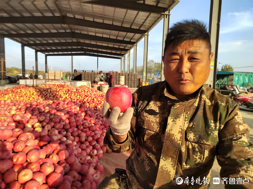 苹果收获季是于作臣最忙的时候,他每天都在忙着收购果农的苹果。齐鲁晚报·齐鲁壹点记者 钟建军 摄