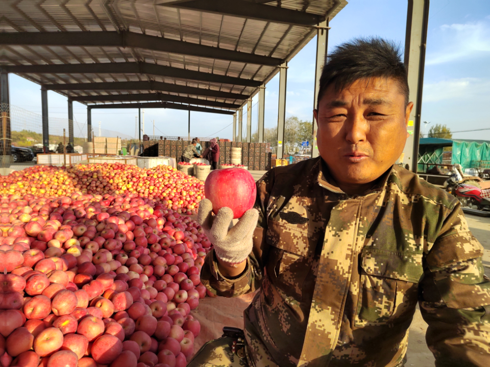 苹果收获季是于作臣最忙的时候,他每天都在忙着收购果农的苹果。记者 钟建军 摄