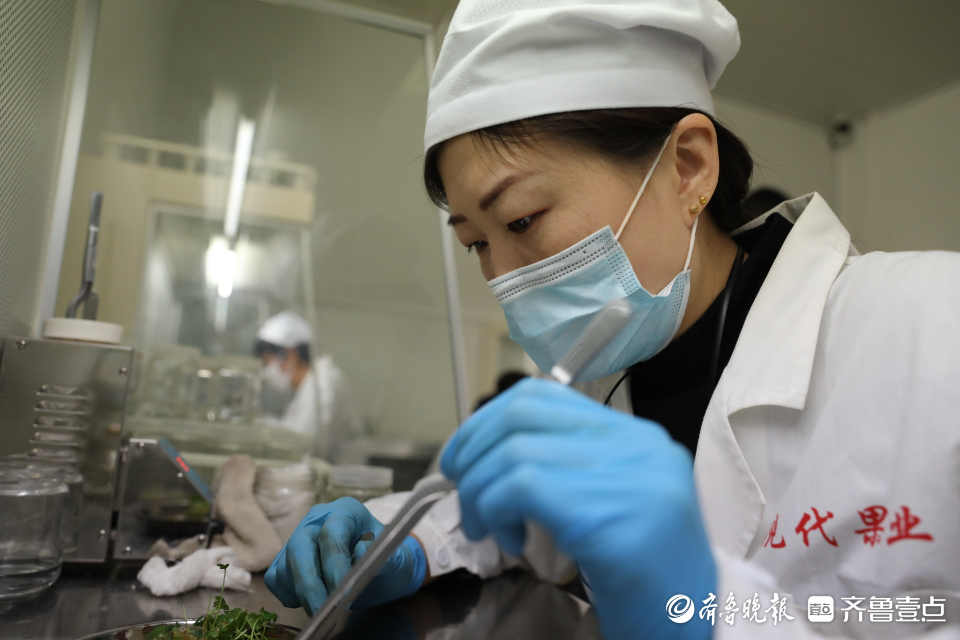 脱毒组培实验室里,工作人员在专心工作。大众日报 卢鹏 摄