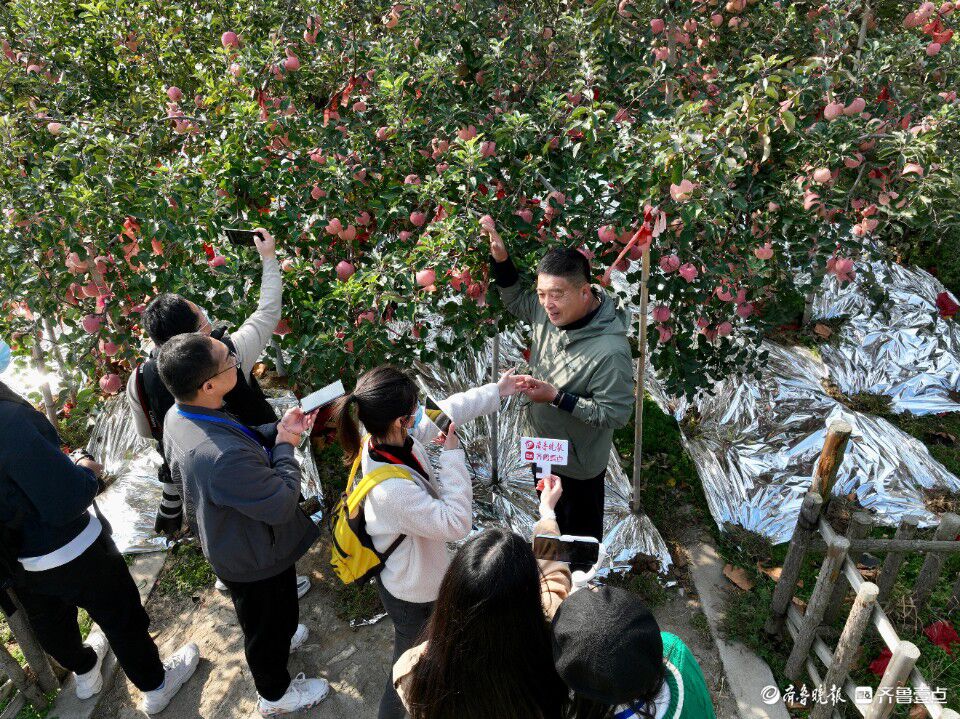 采访团一行来到现代果业苹果主题公园。齐鲁晚报·齐鲁壹点记者 吕奇 摄