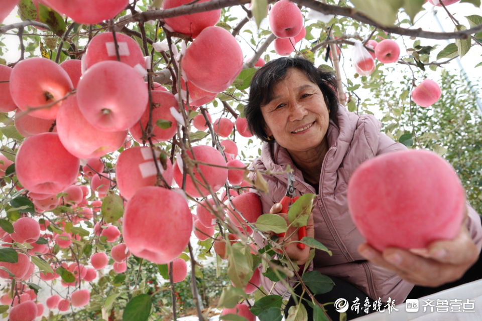 看着自己种出的苹果,张玉清的脸上挂满笑容。齐鲁晚报·齐鲁壹点记者 王鑫 摄