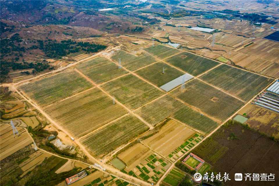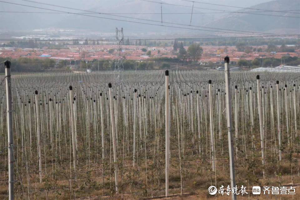 果园内密密麻麻、排列规整的立柱。齐鲁晚报·齐鲁壹点记者 吕奇 摄