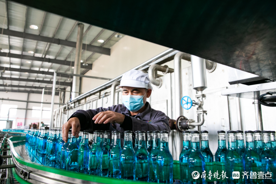 生产车间,一瓶瓶起泡果酒走下标准化流水线。山东画报 刘伟光 摄