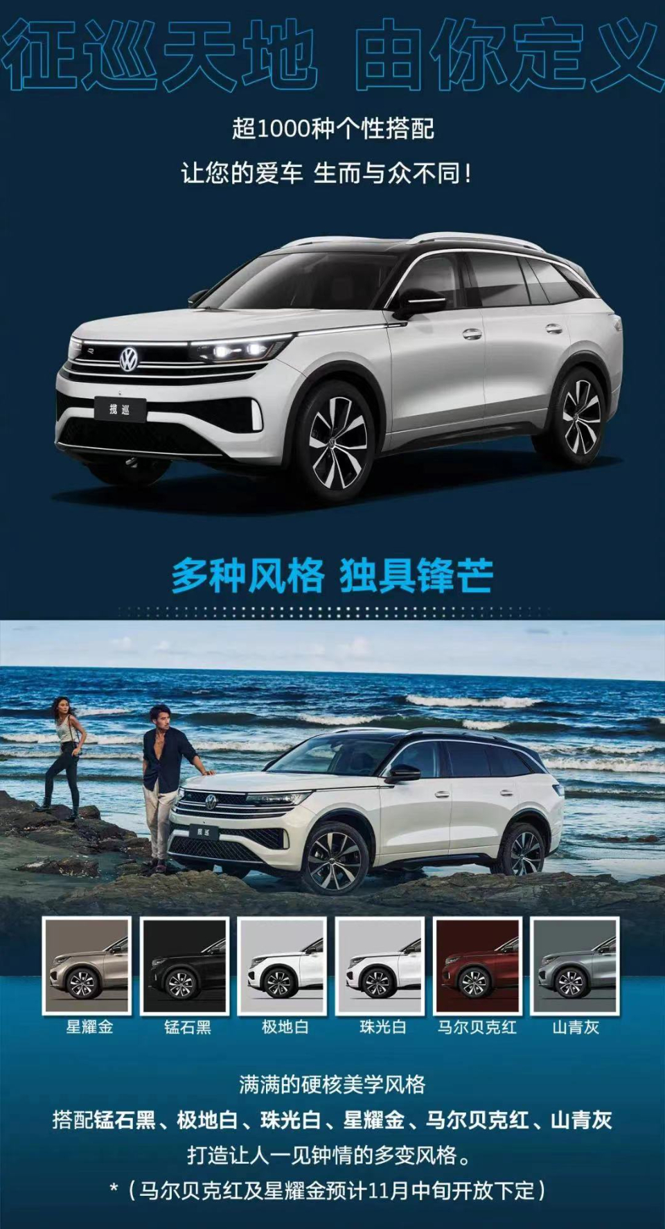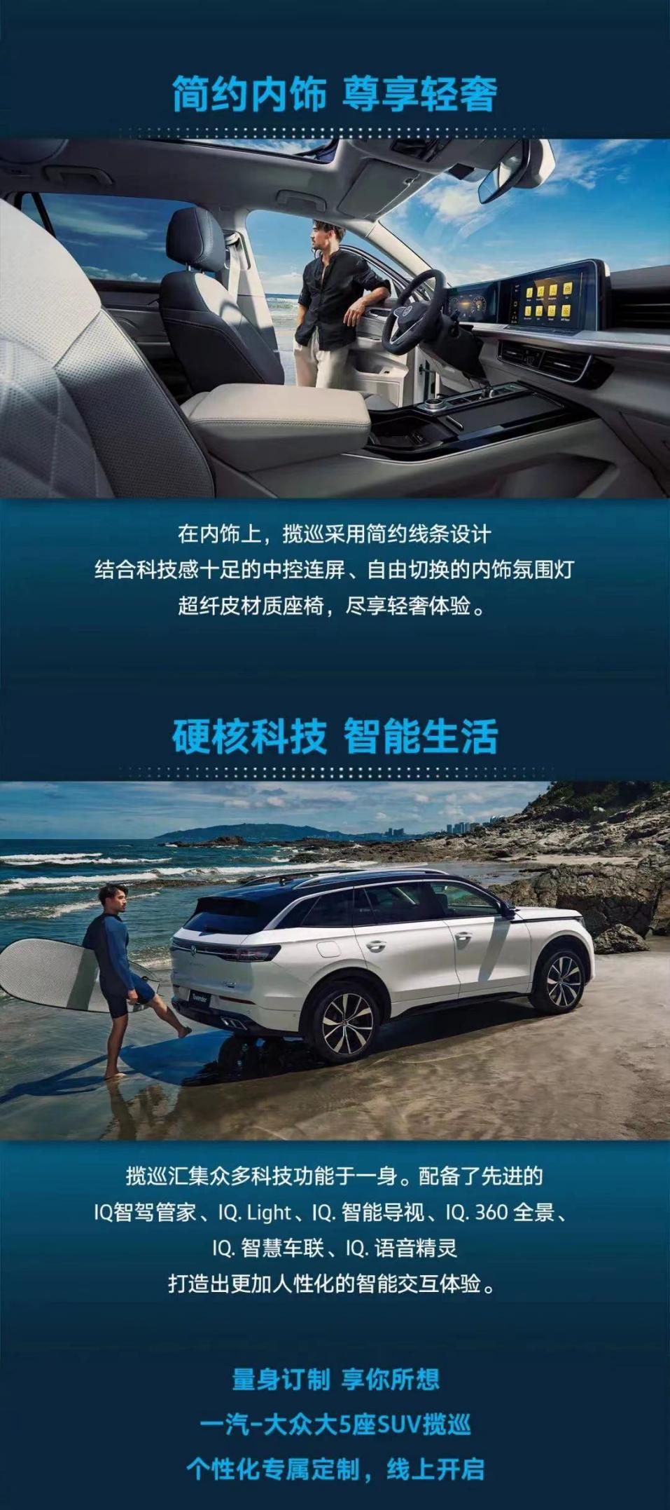 装得下精致,装得下生活,也得装得下梦想和远方,只待与志同道合者一起“纵揽风云,征巡天地”。近日,一汽-大众揽巡Tavendor官宣预售,线上开启个性化专属订制,超1000种个性搭配,给爱车无限可能,首发版享万元豪华装备,仅限前台,限时抢!