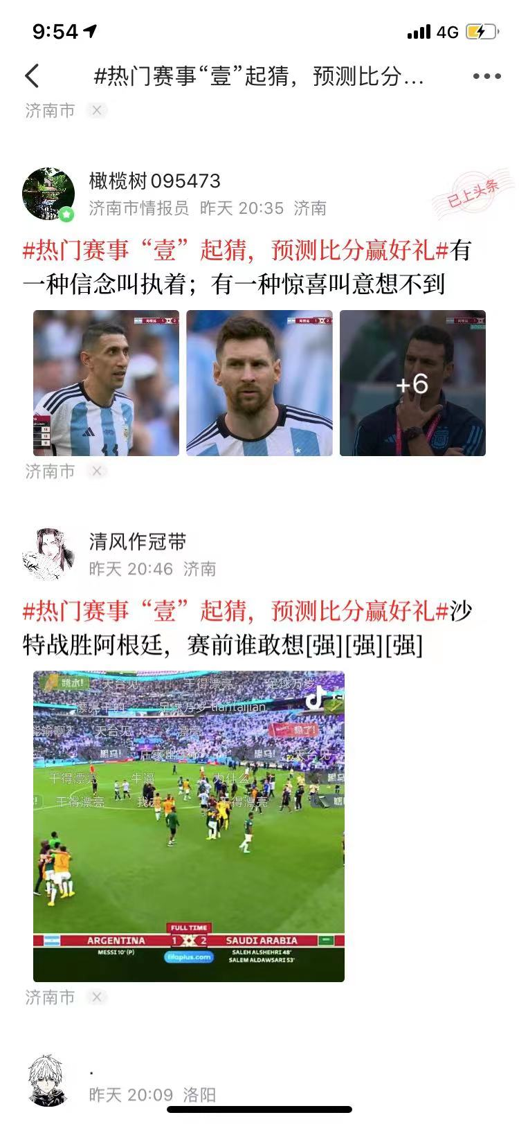 根据有奖竞猜活动规则,昨日参与竞猜壹粉“全军覆没”,所有竞猜用户都不约而同的选择了“阿根廷胜沙特”,随着大冷门的爆出,也让本轮竞猜奖项轮空。