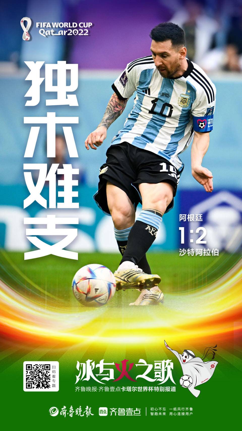 22日,齐鲁晚报·齐鲁壹点第二场竞猜互动关注阿根廷VS沙特阿拉伯的比赛。本场赛事爆出本届世界杯的首个大冷门,世界排名第51位的沙特队战胜了排名第三的阿根廷队,也用一场“冷”结束了阿根廷队此前的36场国际比案不败纪录。