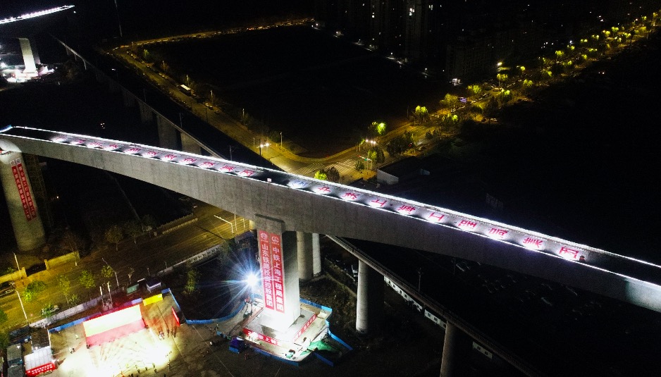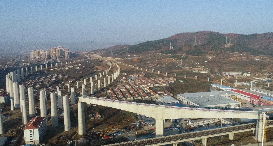 两座万吨桥梁空中完美转身, 潍烟高铁跨越青荣城际青烟直通线