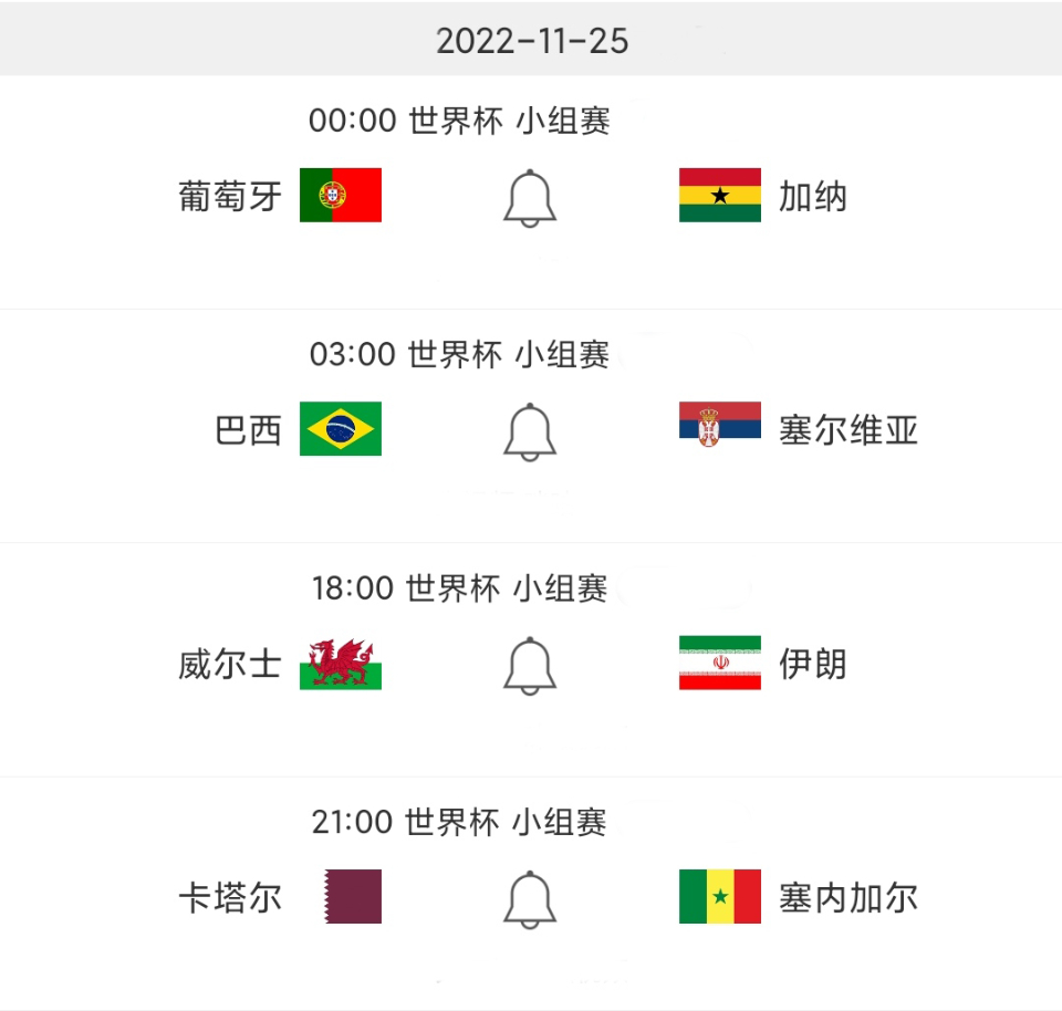 北京时间11月24日卡塔尔世界杯进入第四个比赛日,将进行小组赛G组和H组的四场比赛。将由瑞士VS喀麦隆、乌拉圭VS韩国、葡萄牙VS加纳、巴西VS塞尔维亚,这也是世界杯小组赛第一轮的最后四场比赛。