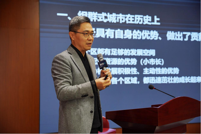 活动现场,作为第三位演讲嘉宾——曲东升,发表了名为《组群式城市的“强中心”路径》的主题发言。