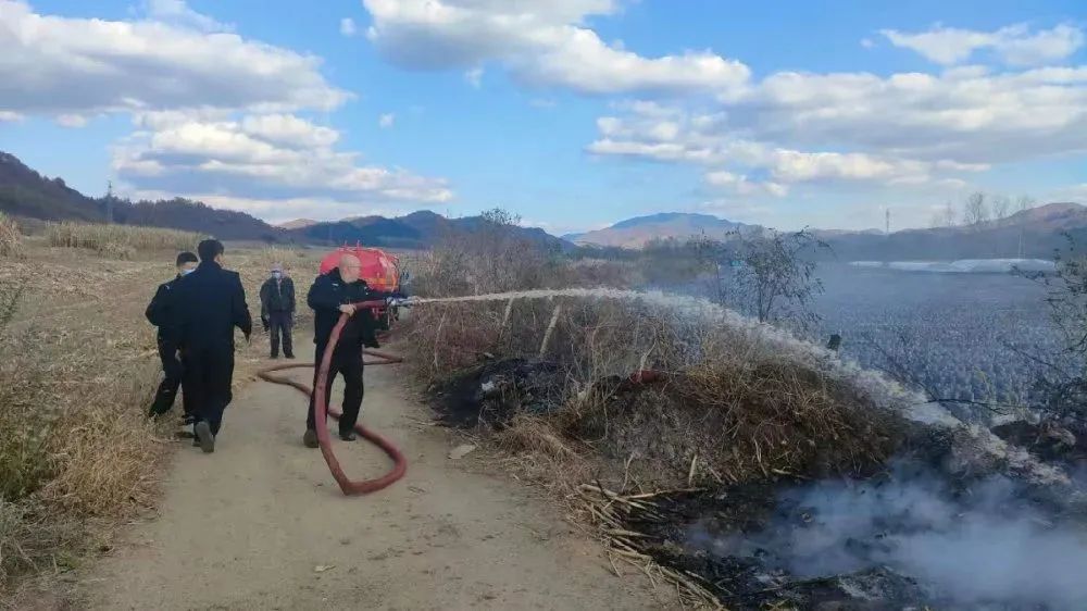 案例二: 2022年11月江苏张家港的一位父亲为了带孩子体验生活,到刚收割完的稻田里烤红薯结果,红薯没吃成还引发了一场火灾。民警与报警人侯先生及周边农户抢在火势蔓延前将秸秆等易燃物清理完毕,随后消防队员赶到现场,火最终被完全扑灭。