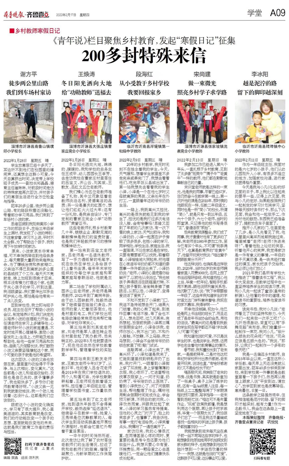 岁末年初,齐鲁晚报·齐鲁壹点《青年说》新闻专栏特开设“我们的2022”新闻策划,邀请校长老师们拿起手中的笔和镜头,记录下2022年最令您难忘的故事和精彩瞬间。