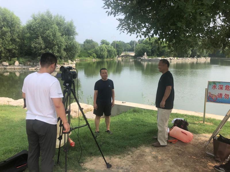 危急关头,刘庆高第一反应就是救人。他临危不乱,一边大声呼救,一边奋力施救。河西岸的王义成听到刘庆高呼喊之后,就抓紧找了个“跟屁虫”(安全气囊),顺着橡胶坝堤西边跑过去,把“跟屁虫”扔过去。紧跟着王义成又转到北岸以后跳入水中,和刘庆高一起施救。