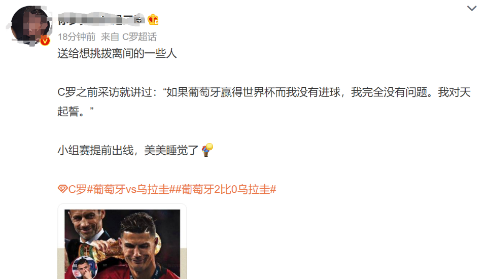 赛后,对于#为C罗熬夜#一事,