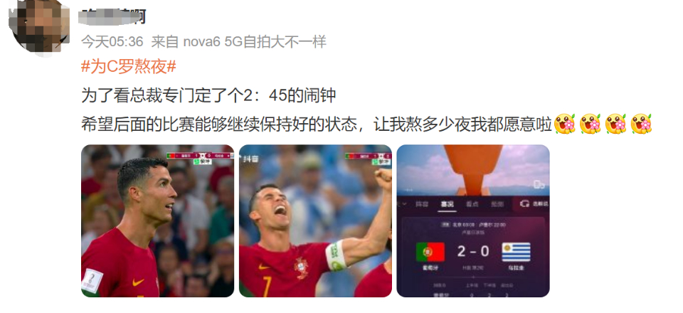 但是,因为C罗的存在,很多球迷选择了熬夜看球。