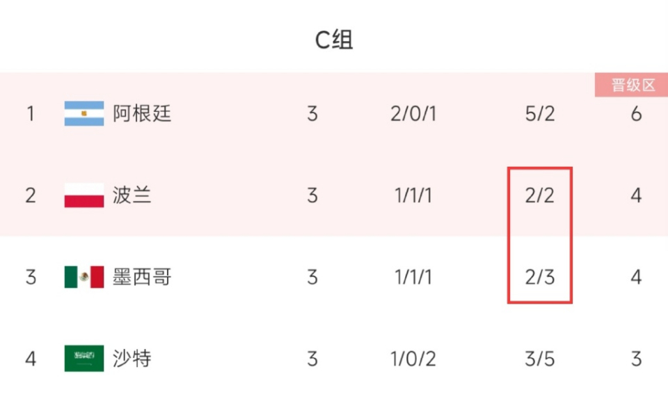 在与阿根廷的比赛结束后,波兰凭借净胜球晋级。