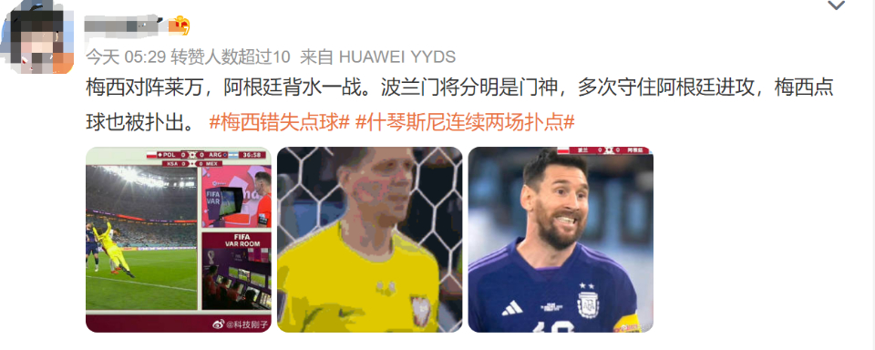 在波兰与阿根廷的较量中,梅西主罚的点球,被什琴斯尼神勇扑出。