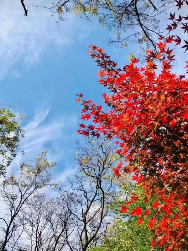 我放下车,老师停车区是八年级的卫生区。这里已经是没有黄叶铺地,只有堆堆黄叶了,学生三五成群在打扫黄叶,有的在低矮的矮松上捡拾落叶,有的在举手够高悬在枝头上的坚强的不落的树叶,有的在捏起水中的草刺。正在扫地的同学们齐声问好,“老师好”“早上好”“老师,你又教语文了么”……我听后心里暖暖的,情绪一下子高涨起来。