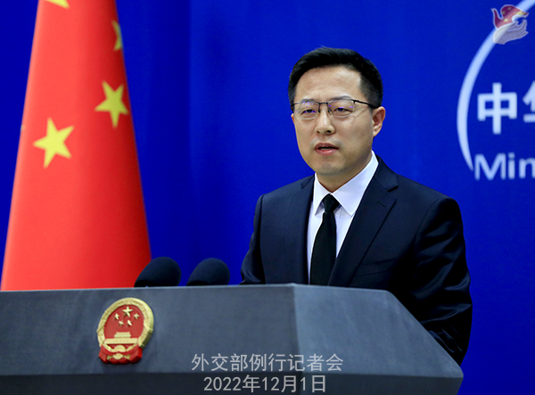 12月1日,外交部发言人赵立坚主持例行记者会。