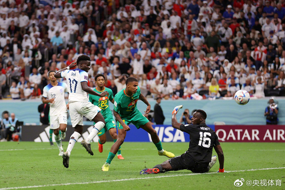 第38分钟,英格兰发动进攻,贝林厄姆带球杀入禁区,传球到中路,亨德森抢点推射破门。英格兰1:0领先塞内加尔。