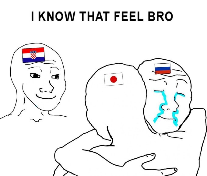 上届世界杯,俄罗斯1/4决赛点球大战遭克罗地亚淘汰,在日本淘汰后,俄罗斯官推晒出表情包,内容是:“我懂你们的感受。”