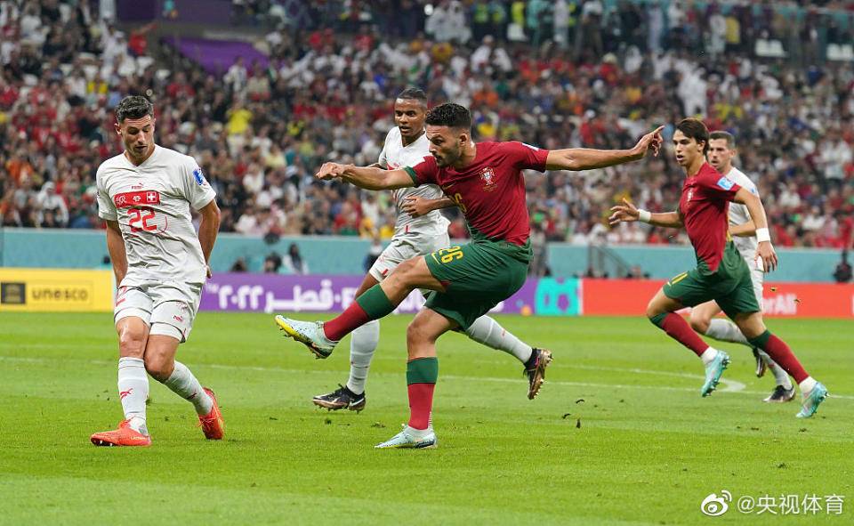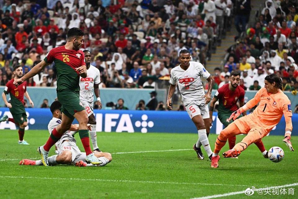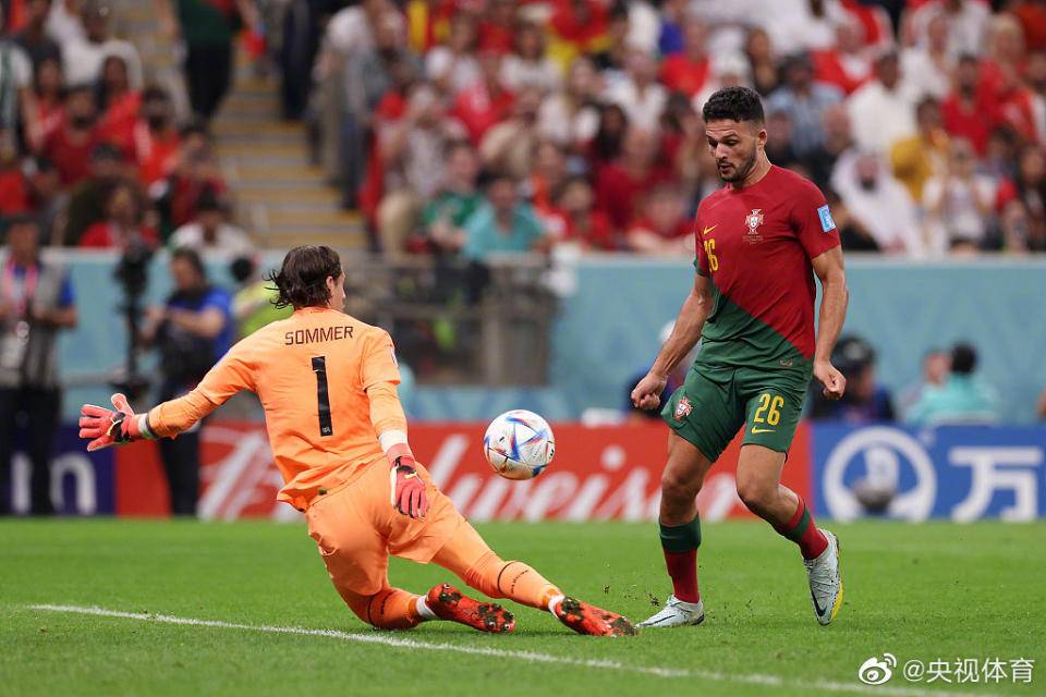 第17分钟,葡萄牙发动进攻,贡萨洛·拉莫斯禁区接菲利克斯传球,小角度爆射破门。葡萄牙1:0领先瑞士.