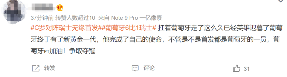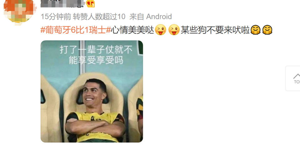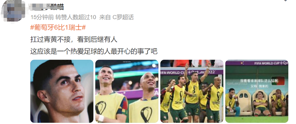不少网友为C罗和葡萄牙队感到高兴: