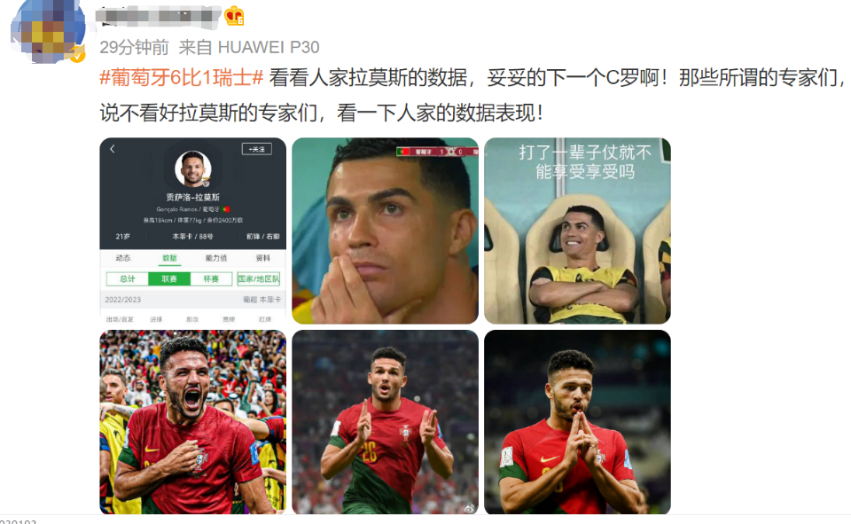 北京时间12月7日凌晨,2022世界杯1/8决赛,葡萄牙6-1大胜瑞士,晋级八强。