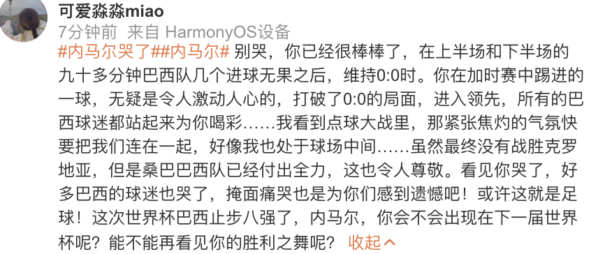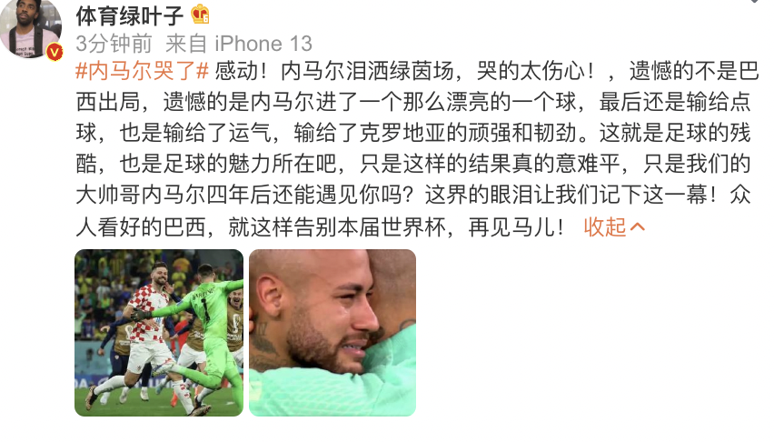 12月10日,在克罗地亚点球大战5-3淘汰巴西后,#内马尔哭了#的话题迅速登上了热搜榜。