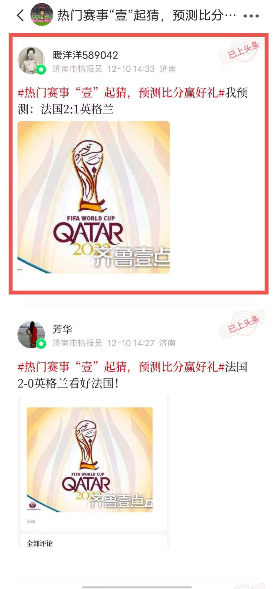 【参与方式】下载齐鲁晚报官方客户端――齐鲁壹点,在情报站点击话题#热门赛事“壹”起猜,预测比分赢好礼#,写下你的竞彩比分+理由上传即可。