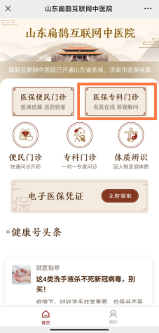 扫描二维码进入“山东扁鹊互联网中医院”公众号