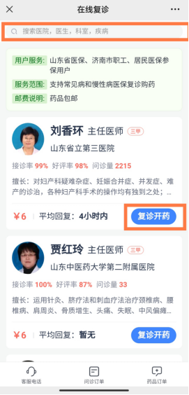 目前济南市共有19家医保定点互联网医院,可为医保参保人提供线上问诊、慢病续方、医保购药、配送到家等服务,医保个人账户金可在网上直接支付续方和购药费用。