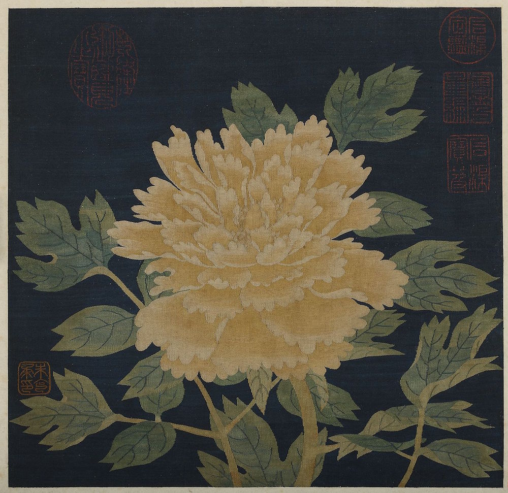 南宋朱克柔缂丝《牡丹图》,辽宁省博物馆藏