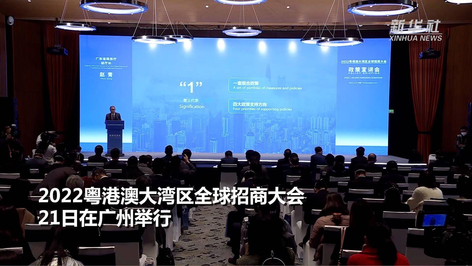 2022粤港澳大湾区全球招商大会21日在广州举行。粤港澳大湾区涵盖香港、澳门和广东省珠三角9市,是中国开放程度最高、经济活力最强的区域之一。