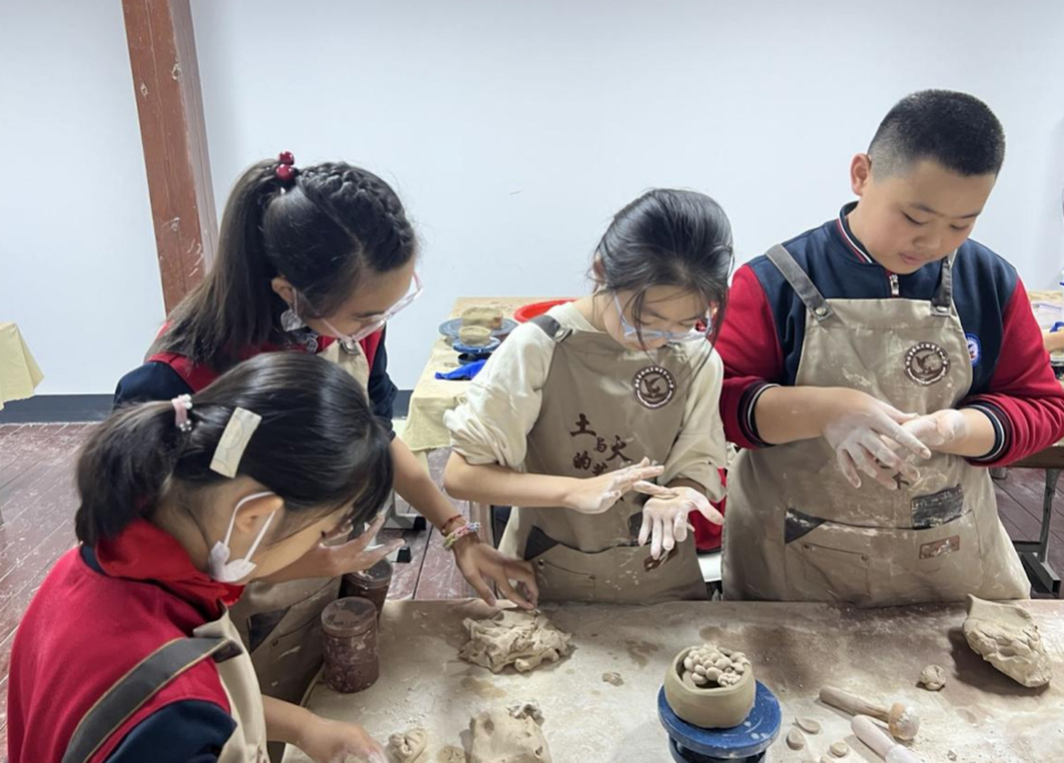 在陶艺课中,孩子们的手指与泥土缠绕,思维在指尖跳动,他们把自己的想法注入制作的陶艺作品中,释放着情绪,让泥巴在指尖绽放出绚烂之花。