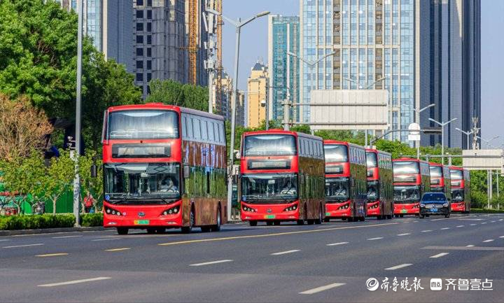 2022年7月22日,济南公交60部双层巴士正式投入运行。纯电动双层巴士容量大,视角广,行驶在宽阔的经十路上,履行“高峰通勤 平峰观光”的使命。早晚高峰时段,双层巴士主要在T202、T115、T3三条高峰通勤线路上运行,大站停靠,提高运行速度,提高上班一族公交通勤效率,同时,双层双排的座位也为市民乘客提供更加优质、舒适的出行体验;平峰时段,双层巴士将主要投放到K202、K115、K117三条常规公交线路上,逐站停靠,着力提高车辆利用效率,并满足市民观光体验需求,将公交出行与观光体验融为一体,让市民乘车出行同时,领略泉城济南的美好风光。